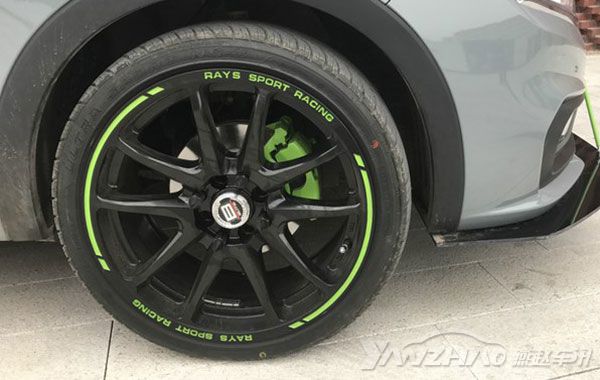 改造的第一步更换轮毂、轮胎,虽然不得不承认宝骏310原厂的轮毂还是很好看到,但给人的感觉还是小了一点。所以这个车主找了个17英寸的轮毂和轮胎换上了,仅仅只是大了3英寸,不过效果马上就不同了,而且仔细看这轮毂可是带刺的哦!