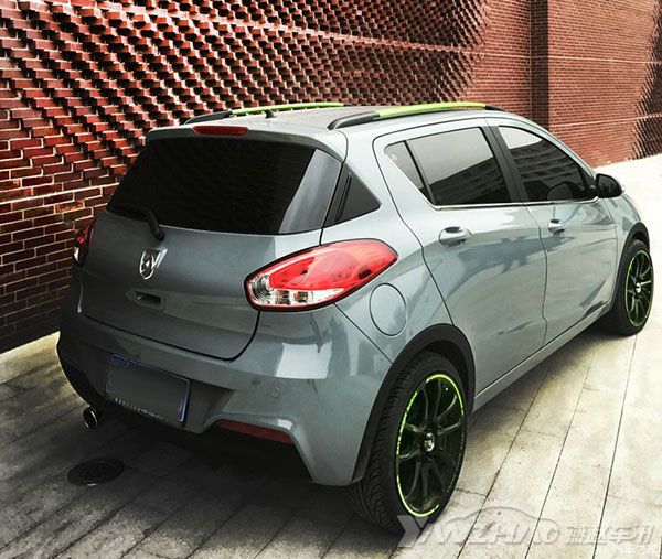 改造的第四步全车贴膜改色,车主选择的是50度灰,这个颜色小编也很喜欢。看着配上黑绿的轮毂,相当有感觉。而且由于没上色前的宝骏310是红色,改完色一开车门,红配灰很有点高大上的味道~