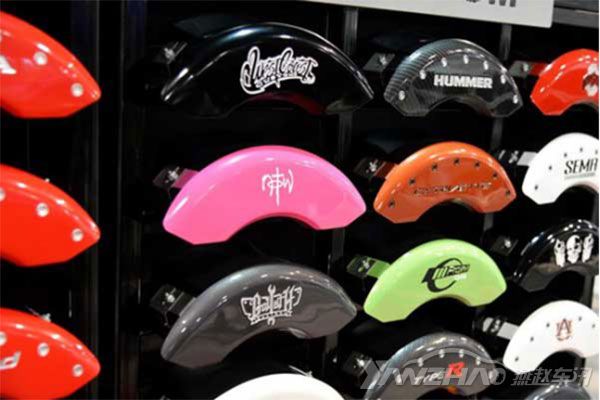 除了轮胎之外,刹车卡钳也是能够突显车辆外观的一个亮点。所以在这次SEMA上,T6061铝合金材质的卡钳装饰,成为了很多车迷关注的焦点。这些刹车卡钳罩,可以自定义图案和颜色,比直接往刹车卡钳上喷色更好看个性,不过价格也稍微贵一些。每个刹车卡钳罩的价格在1000多元,在网上大家可以买的到。