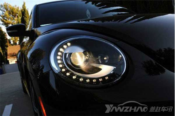 这款黑色的甲壳虫是美规2.0T车型,这种纯黑原厂涂装甲壳虫在国内并不多见。车主最先对甲壳虫改造的地方就是它的“眼睛”,将原车的卤素大灯,更换为了大众其它车型上原配的LED泪眼大灯。有了眼泪的甲壳虫,看上去更加的精神。
