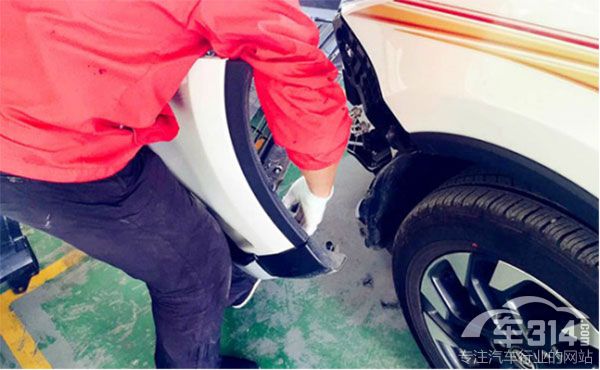 第二步,打开发动机舱盖,将前杠上面的连接全部断开,包括水箱上护板之类的。接着是侧面轮胎内衬的卡子和螺丝,也需要拧下来。最后,是把底盘前水箱护板上,和前杠的固定螺丝都拆下来,这一处是人们常常容易忘记的地方。