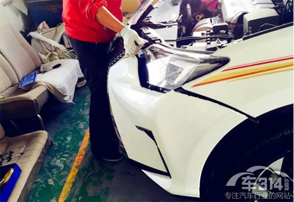 第五步,更换完原车前杠上的东西后,开始安装新的雷克萨斯NX200前杠。过程和刚才拆卸的一样,只不过安装的时候,要注意调整大灯和前杠之间的距离。