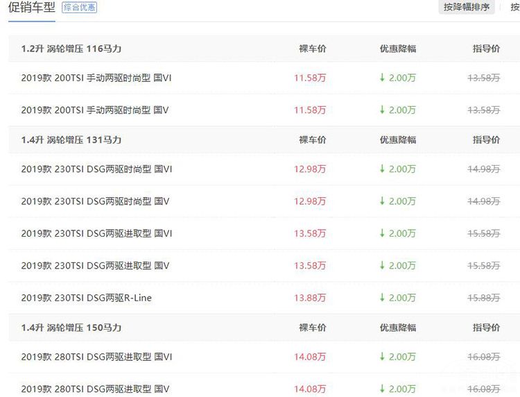 目前,探歌在重庆地区最高有2万元的优惠,入门价已经降至11.58万,1.4T高功率车型也降至14.08万,价格已经比定位更小的T-Cross途铠还便宜。同时,当前购车的附加条件有店内上牌、店内置换、店内上保险、店内贷款,并且还有脚垫+ 挡泥板 + 全车膜的礼包相送。