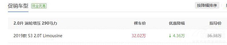 目前,S3在重庆地区有4.36万元的优惠,优惠后仅需32.02万,可以说是30万出头能买到加速最快的车型了。同时,当前购车也没有附加条件,并且订车即可赢取5000元家电大礼,置换购车至高可享25000补贴。
