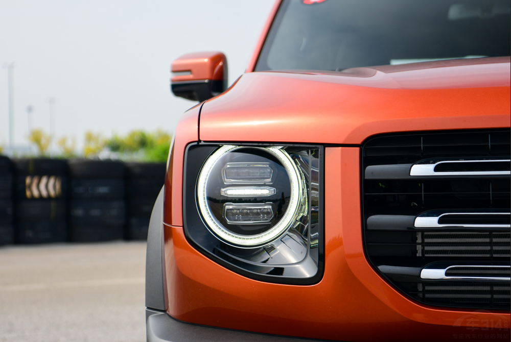 只有实际摸到大狗才知道这台车多有意思。复古的前脸,圆形大灯里采用分组式的灯芯,点亮之后效果不错,中央方正的中网里,镀铬饰条的设计也很有力量感。