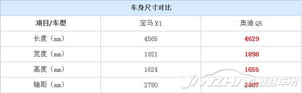 尽管全新一代的宝马X1在车身尺寸上有所进化,但是奥迪Q5毕竟是一款中型SUV,在身材上有着绝对的优势,尤其是车身宽度比宝马X1大出了不少。当然数据不能决定车内的乘坐空间,奥迪Q5在这方面一直都处于劣势。