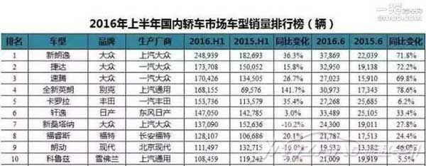 当我们还沉浸在吃着自己喜爱的雪糕时,还在熬夜通宵为欧洲杯呐喊时,还在为中国南海政治问题打抱不平时,现实的日历告诉你,2016年已经过半了!是的,你没有听错。值得庆幸的是,你能立马看见小编诚意献上的2016上半年汽车销量点评。根据最新统计数据显示,6月狭义乘用车销量达173万辆,同比增长20.6%,上半年累计销量1065.3万辆,同比增幅为11.5%。下面就随小编来看看,轿车、SUV、MPV市场,分别有哪些亮眼表现。