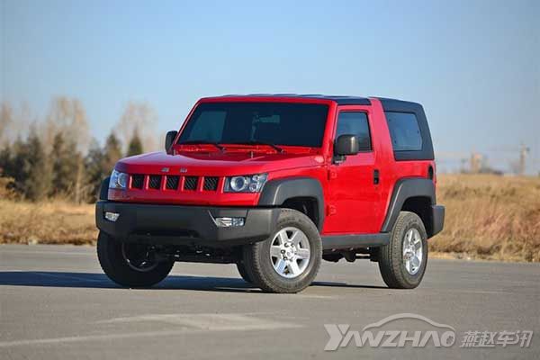 北京40同牧马人一样,有着太多相似之处,车顶篷都是可以拆卸下来,外观上采用5孔设计的进气格栅造型,比牧马人少了两个孔,整体外观展现出硬朗的风格,外形十分粗犷,前后保险杠、轮眉、侧裙等部分大幅度外凸,野性十足。
