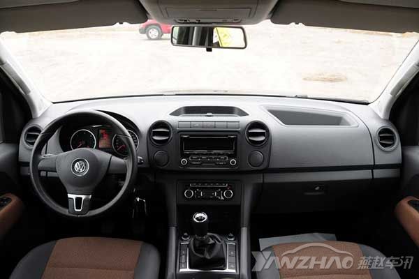 或许是美式皮卡的内饰粗犷感已经根深蒂固的原因吧?当你拉开车门坐进车内时,它会让你产生另一种感觉。这就是德国工匠的设计审美,熟悉大众汽车的朋友一眼就能看出这是典型的大众汽车设计风格。简单的直线线条勾勒加上中控实用的多媒体和空调按键,没有多余的冗杂的设计,整体以实用至上。而它的娱乐配置也算不上丰富,不过也足以满足到日常使用的需要,例如收音机、CD播放器等功能都可以找到,只是时下流行的USB、AUX等娱乐扩展功能未见踪影,这对年轻人来说有点可惜。不过话说回来,它的客户群定位并不是年轻人,我也相信年轻人也不会去购买这款车。