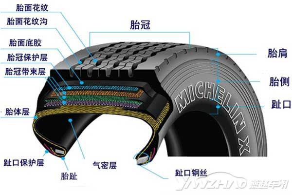 轮胎结构可谓是极其复杂,小编为其整理了一张分层解剖图,让大家来更加清晰地了解: