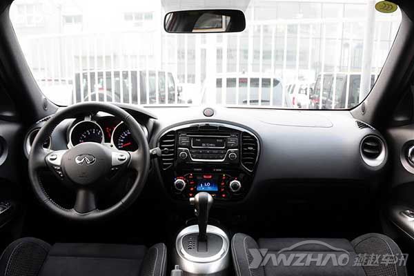 来到内饰,啧啧,简直就是换标的日产JUKE内饰啊,基本上照搬过来,除了大面积的硬质材料的使用有些和英菲尼迪的品牌形象不符之外,其整体造型设计和做工还是令人满意的。另外,配置方面也没有什么惊喜,低配车型没有中控大屏幕,座椅是手动调节和绒布材质,还好,无钥匙进入和一键启动是全系标配。