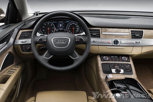 内饰上依旧是奥迪家族式的传统设计,黑色皮革搭配木纹饰板是豪华车惯用的搭配手法,另外配置上自然也不会落后,这个价位的该有的都有了。