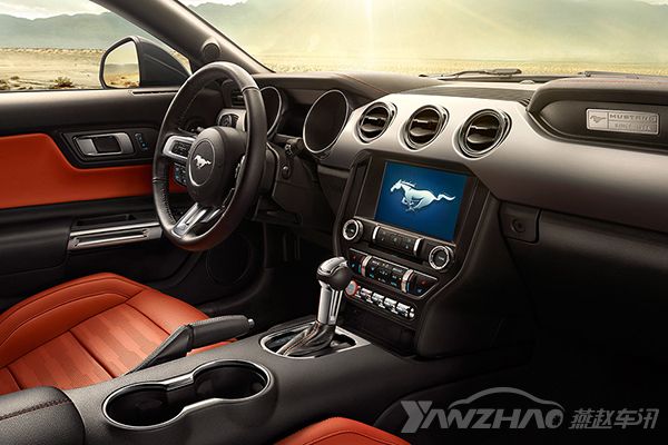 内饰方面,总的来说没有外形那么吸人眼球,对称式的中控布局在传统不过了,不过其复杂的线条切面造型让其充满了动感气息,中控台复杂的按键布局,想必没几个人去仔细揣摩,因为买这车的人,更多的是为了去体验驾驶乐趣。在配置方面,福特Mustang全系标配SYNC 3系统,该系统包含有8英寸液晶屏、手机互联、语音识别等更多功能。