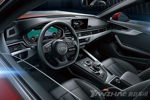 内饰方面,可谓是这代全新奥迪A4L的最大焦点,同样采用了奥迪最新的家族式设计,贯穿式的空调出风口和大面积的金属饰条、立式的中控大屏以及造型独特的电子换挡杆,透露出浓浓的科技范,加之平底式的方向盘造型和12.3寸的全液晶仪表盘,让你仿佛置身于一艘宇宙飞船的驾驶舱中。