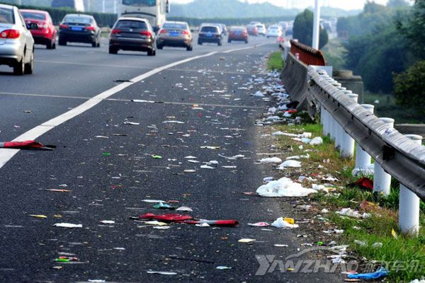 这些垃圾不仅只会污染环境,还会造成交通意外。要知道高速行驶时一个大点的石头,都有可能造成车祸,更何况这些垃圾。更让人生气的是,有些车在堵车低速行驶时,一边跑一边往外扔垃圾比如香蕉皮。令人不得想讽刺一句,“你以为你在玩跑跑卡丁车啊!”