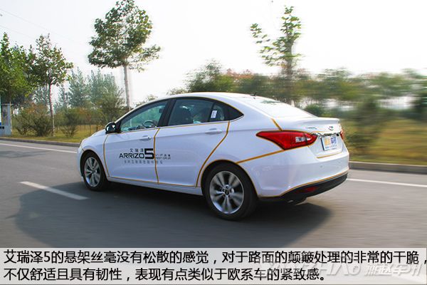 奇瑞这个品牌最大的优势就在于底盘的调教功底,不仅在自主品牌中数一数二,即使与合资品牌相比也毫不逊色。艾瑞泽5的悬架丝毫没有松散的感觉,对于路面的颠簸处理的非常的干脆,不仅舒适且具有韧性。这个底盘的表现有点类似于欧系车的紧致感,对于这个价位的家用车来说非常的难得。