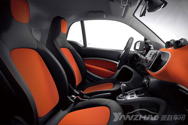 内饰上也是追求个性,超大的球形空调通风口,三幅多功能皮质方向盘,在中控台上设计了一个内置抽屉,内饰的颜色也有多种颜色供你选择,做足了个性化需求的文章,smart是两座的设计,再加上他迷你的车身,在空间上只能是刚刚满足需求而已谈不上充足,副驾驶可以完全折叠放倒,拓展了一部分后排的空间,开出去买个菜还是可以的。