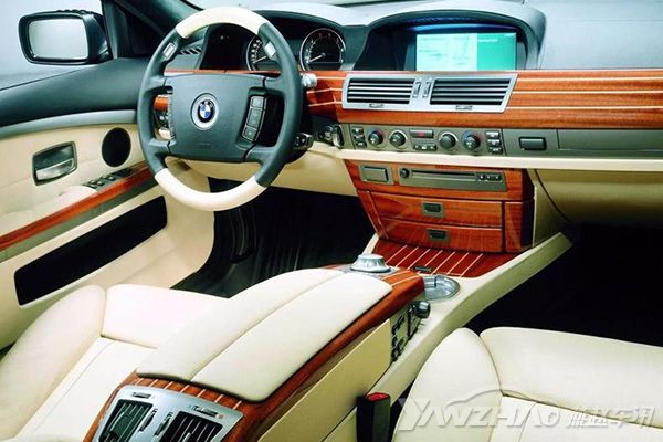 这个内饰现在看来虽然有点老气横秋,但是在那个年代木纹装饰作为豪华车的标志,出现在宝马7系上完全在意料之中。这代车型上iDrive系统的加入让它的科技感倍增,同时可以对悬架模式、娱乐系统、空调、蓝牙电话和导航在内的诸多功能进行调节。宝马7系为用户提供了非常丰富的选装,比如电动吸合车门、自动后备厢、无钥匙进入、舒适下车功能和悬架自适应阻尼调节等。