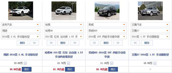 因此说汉腾X7的性价比超高,这主要是指10多万以内的车型。超过10多万之后,汉腾X7配置就和荣威RX5、博越这些同级别的对手,在伯仲之间没有那么明显的优势了!所以,建议大家如果想购买的SUV时,一定要考虑汉腾X7,这款车的配置绝对能够满足你用车任何方面的需求。