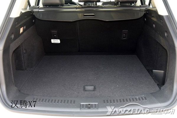 庞大的车身尺寸,使得汉腾X7这款车的内部空间非常充足。不仅车内头部与腿部都没有局促的感觉,而且后备箱的常备容积更是达到了344L。同时,汉腾X7的第二排座椅还支持全部向前放到,这样极大的扩展了空间即使一些大型的货物或家具,也能放得下。由此可见,汉腾X7的实用性是多么的强。