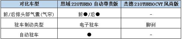 在安全配置方面杰德比思域少了两个气囊,并且目前国内消费者喜闻乐见的电子手刹和自动驻车功能,在杰德全系车型上都没有出现。