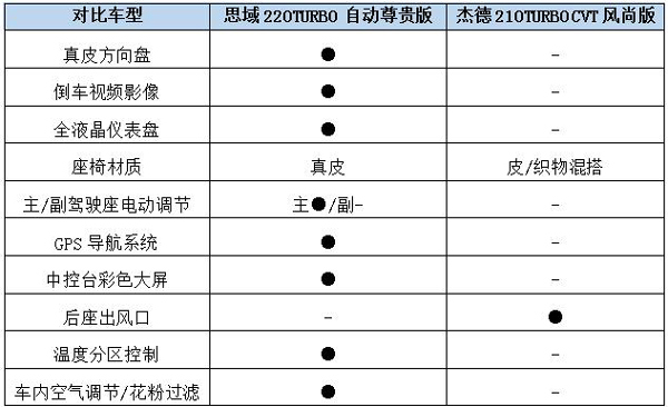 车内配置对比