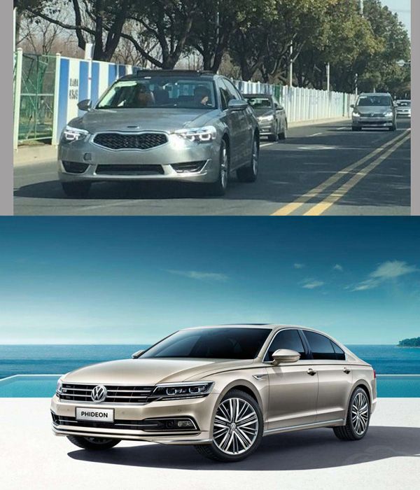 大众辉昂的测试车在上市之前也被伪装成了起亚车型,如果不是因为辉昂标志性的“双U”形日间行车灯,仅从前脸来看,真的会误认为是一台起亚K7。起亚K7是一款中型轿车,国内命名为凯尊,一直以进口的方式在国内销售,所以曝光率极低。就算这台辉昂这台伪装测试车摆在你的面前,估计也看不出什么问题。