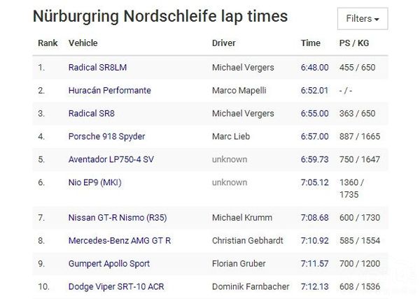纽北圈速:7分05秒12
