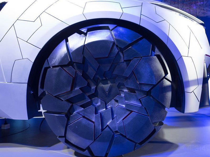 特别是御岳概念车注重光影的效果,在车头和轮胎处设置了红色的灯光效果。等它们都亮起来之后,红光从裂缝处透出来,十分炫酷就像是火山喷发一样,充满了力量感。