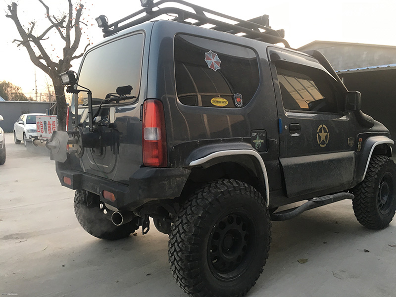 吉姆尼三门的设计就是就是为玩家准备的,虽然有第二排座椅,但大多数时候是应急,它更像是一台带你去荒郊野岭探寻未知道路的玩具车。吉姆尼配备规格为205/70 R15规格的普利司通轮胎,在城市路面省油、静音,不适合越野,与全地形AT轮胎还有一些的差距,为了玩必须选择更换AT胎,再升高底盘,对烂路适应就更好。