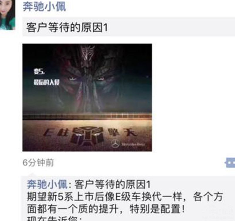 不过,这回奔驰没有在做什么挑衅的海报,而是奔驰的销售们,在朋友圈里各显其能。阐述各种新5系上市之后,买奔驰E级的理由,包括E级比新5系配置高出的地方,E级车可能会在近些降价增强竞争力等,搞得朋友圈十分热闹。不得不说,奔驰在微信上玩宣传上确实有一套,不过宝马新5系和奔驰E级相比究竟怎么样呢?