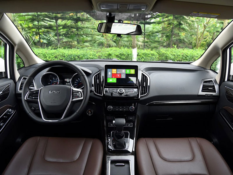 进入车内,福美来MPV内饰采用了黑色与酒红色拼接的双色设计,设计师把行车电脑显示屏被放置在了中控台的上方,可显示油耗、续航里程等信息,造型也更富有层次感。中控台控制面板还加入了钢琴烤漆面板,看起来也拥有着不错的质感,整体看上去设计非常中肯。