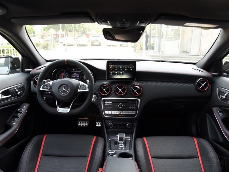 内饰方面与普通A级不同充满了浓重的运动气息。Alcantara材质的方向盘加上三幅平底的设计使得驾驶者在激烈驾驶使能够牢牢的把握住它。整个内饰采用黑、红两色的色调进行搭配再加上战斗风格的空调出风口瞬间让人肾上腺素爆棚。