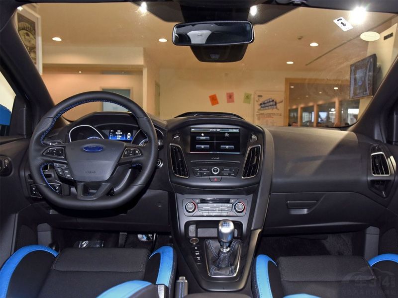 内饰相对于凶猛的外观可就差了那么一点了。除了运动感十足的座椅外其余好像与普通版福克斯差别并不大。唯一凸显运动的应该就是中控台上方的三联仪表了,这个仪表用以显示机油温度/压力/增压值等数值,这可都是与日常激励驾驶息息相关的。