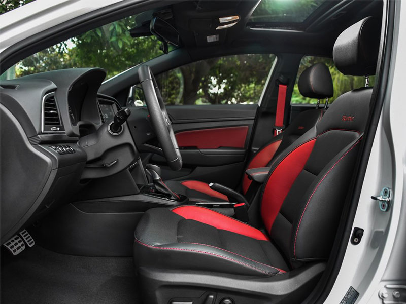 与张扬的外表相比,领动的内饰设计就是典型的家用风格。内饰采用了与第九代索纳塔相同的设计风格,T型仪表台、规整的功能区域都给人四平八稳的感觉。双环式的方向盘样式很显运动,开车也非常方便,座椅靠谱上的“Turbo”标识,每处细节都带来了强烈的视觉冲击感。