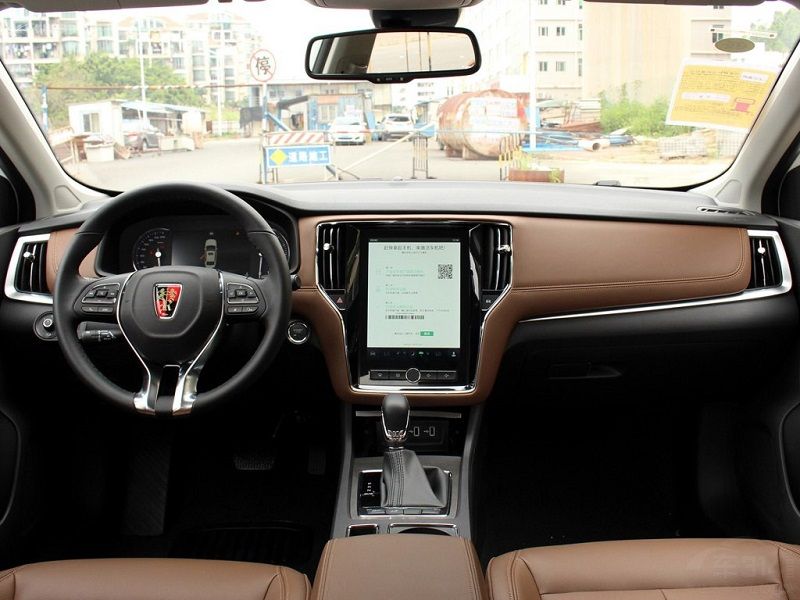 内饰上,荣威i6的设计几乎和RX5一样。主打互联网牌的荣威i6在中控上有一块抢眼的10.4英寸的大屏幕,在上面可以完成绝大部分的车内操作。屏幕的显示效果也很清晰,达到了很高的水平。内饰为黑色和棕色相间的设计,中控台棕色部分使用皮革包裹,触感很好。