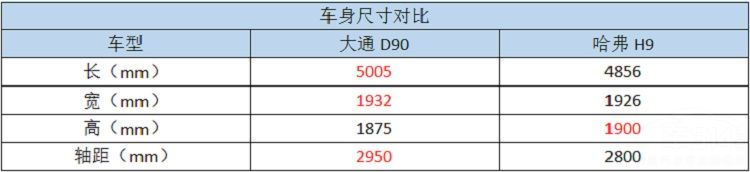 从尺寸上来看,大通D90占据了优势,更长的轴距会让车内部空间有更好的表现。哈弗H9上市的时间比较早,在外观设计上没有D90时尚。
