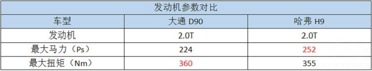 从数据上看,虽然最大马力上不如哈弗H9,但大通D90在扭矩上占一点优势。两款车都使用了2.0T发动机,相信在动力表现上也不会有太大的差别。
