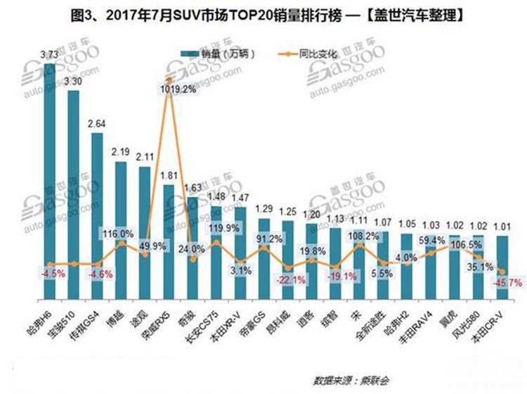 至于7月份SUV里的热销车排行,也有了不小的变化。比如宝骏510成功“爆菊”传祺GS4,拿下畅销榜第二,威胁“神车”哈弗H6霸主地位等等......真可谓是热闹非凡,今天我就来带大家去看一看,上个月卖的火的SUV车型有了哪些新变化?