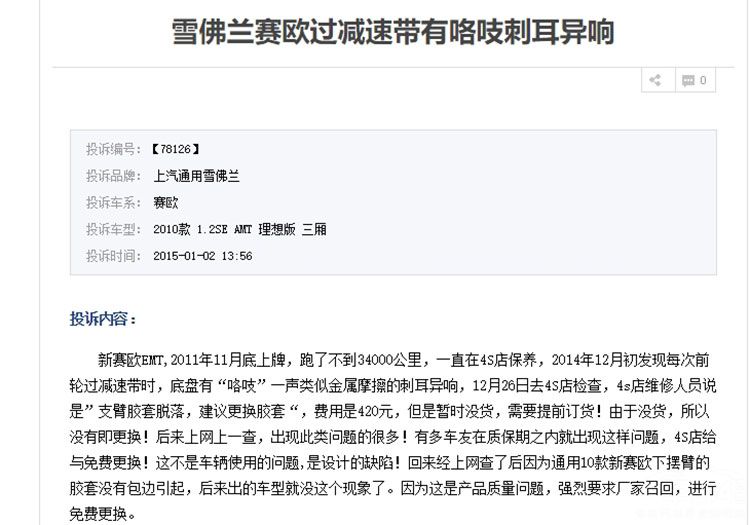 而实际上,雪佛兰跟减速带相克并不是偶然,在网上翻查大家能够找到不少相关的案例。比如上面两件,一个是赛欧减速带时,底盘支臂胶套脱落。一个是迈锐宝过减速带,受到震动熄火。这些都从侧面反映出来了,雪佛兰生产的部分车型在装配上存在缺陷,而且抗震力也比较差。