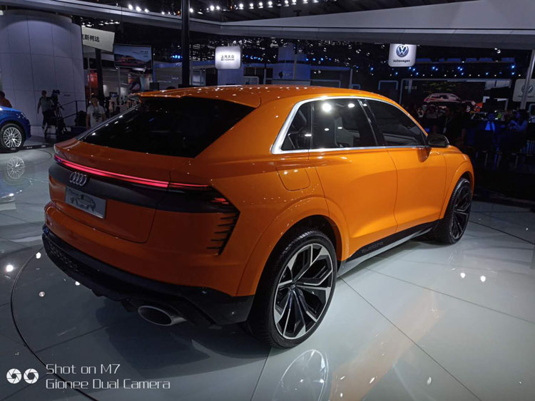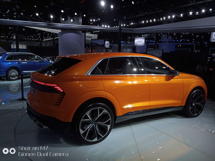 相比于普通版奥迪Q8概念车,这款全新概念车在其基础上加入更加凶狠的外观套件。进气格栅采用了Audi Sport旗下高性能车型通用的黑色蜂窝状进气格栅设计。头灯组与进气格栅融为一体,内部集成激光大灯与日间行车灯。车身侧面腰线由车头延伸至车尾,轮毂相比奥迪Q8概念车将进一步增大,运动感十足。尾部采用双边共两出式排气布局,尾灯为贯穿式设计。
