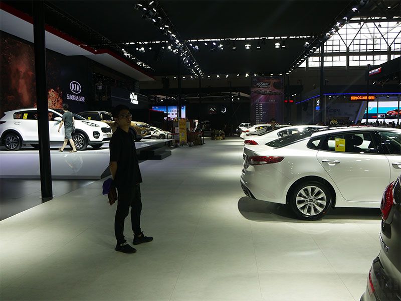 新款产品KX7坐落在展台的最高处,虽然是新产品可是因为品牌整体形象在消费者心中已经一落千丈询问之人也是寥寥无几。