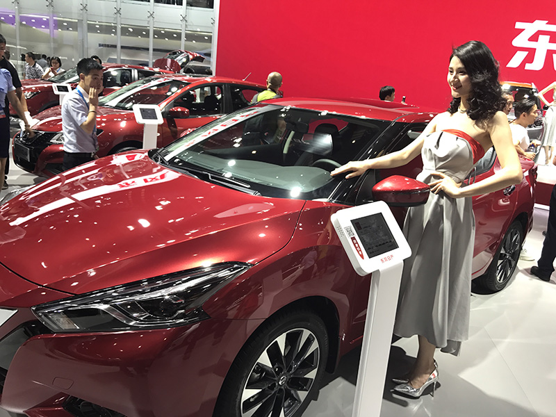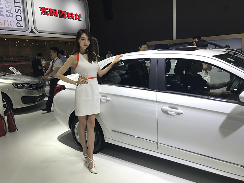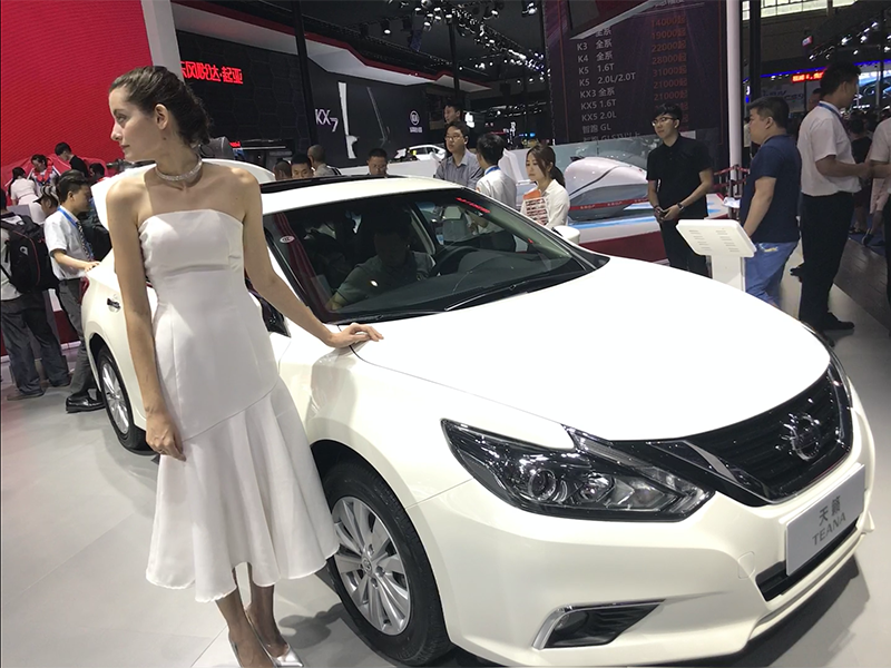 同样是东风日产展台,蓝鸟以时尚年轻的外观再配上穿着时尚靓丽的美女模特,你看看旁边的帅哥看的心痒痒了,眼睛都挪不开了。