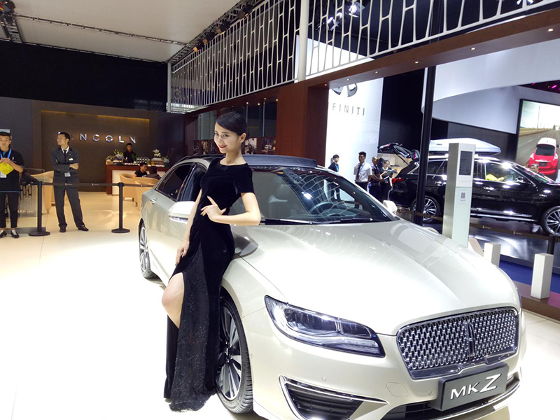 林肯的MKZ美女模特身穿黑色长裙,随便往车上一靠,这个氛围就变得奢华,太符合这气质了,美女就是不一样。