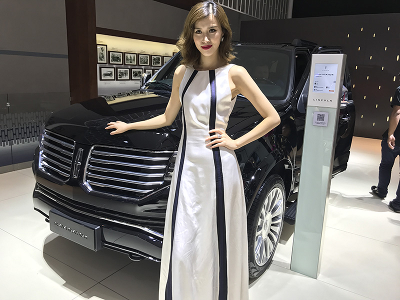 林肯的navigator美女模特穿着长裙,看着端庄大气,成熟稳重,最直接的表达了林肯汽车的理念。