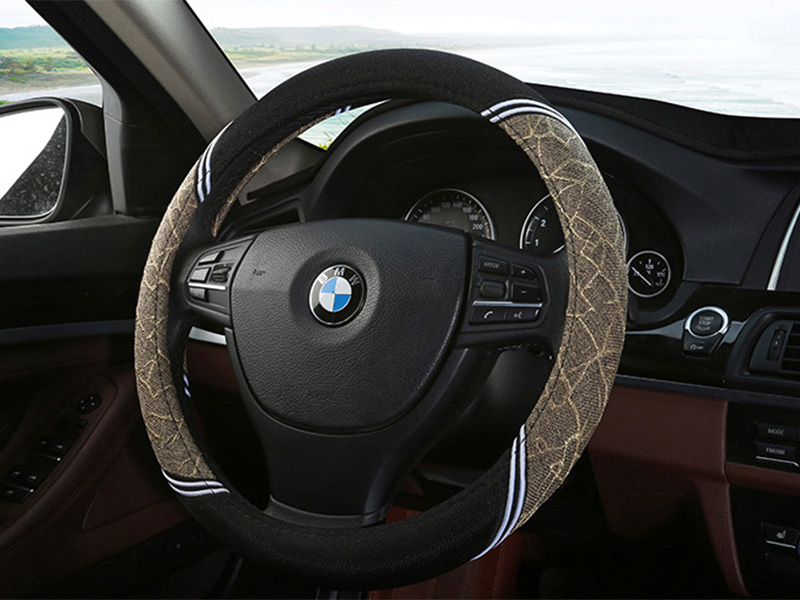 夏季一到,感觉方向盘就很黏,经常开车的朋友可能深有体会,也不可能每次用完车就洗一遍,太麻烦,那可以试试亚麻方向盘套。对于有车一族来说,装一个柔软的亚麻方向盘套,不仅可使方向盘免受磨损,而且可增加手感和摩擦力,防止手出汗打滑,进而增强车行驶时的反应灵敏度和安全性,还能起到减少吸收震动的作用。安装很简单,先套住一点,然后从一边再慢慢的移动,可能到最后有点费劲,需要用点力让亚麻方向盘套全部套在方向盘上,这样就安装好了。