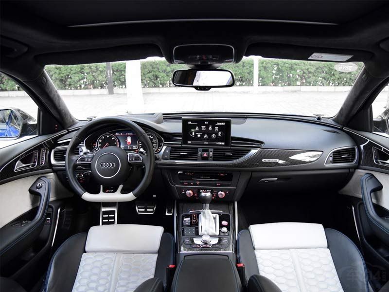 来到内饰会发现它与普通版本的A6其实并没有多大的差异,不过仔细观察你会发现在普通版本A6上的桃木或者镀铬装饰件在它这可都变成了碳纤维。三辐式平底方向盘是奥迪高性能车系的标志性方向盘将整体的运动感点缀得十分到位。