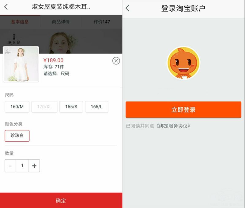 在选择好所想要购买的产品后点击确定这时候就会跳出来一个淘宝账户的登陆界面此时直接点击进入就可以了。别担心这会是淘宝上的假冒伪劣产品,这可都是在商场内有着实体门店的和商场的东西都是毫无差别的,毕竟它们可都是同一个“娘家”。