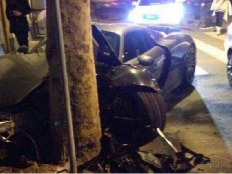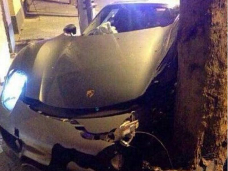 保时捷918 Spyder撞树