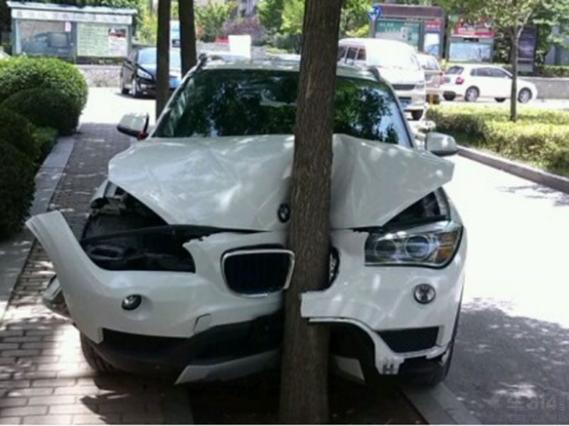 老款宝马X1撞树
